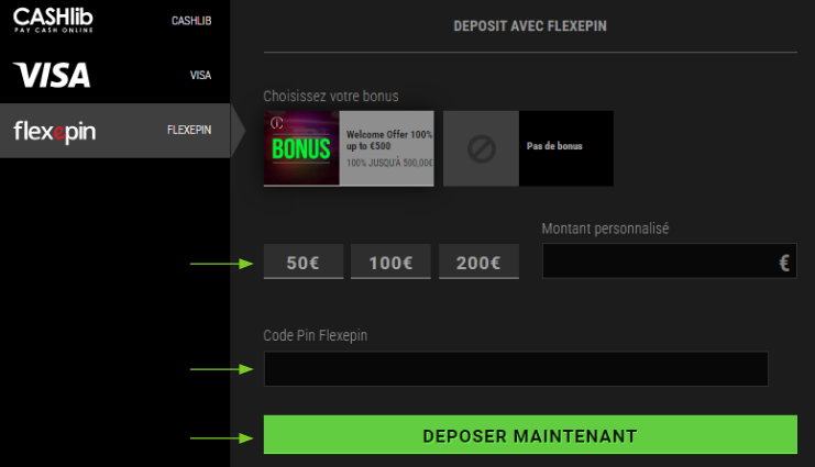 Effectuer un dépôt avec Flexepin est simple et rapide. Voici les étapes à suivre :